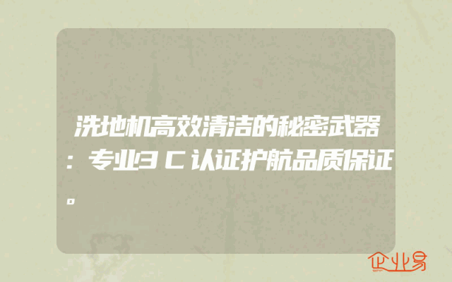 - 洗地机高效清洁的秘密武器:专业3C认证护航品质保证。