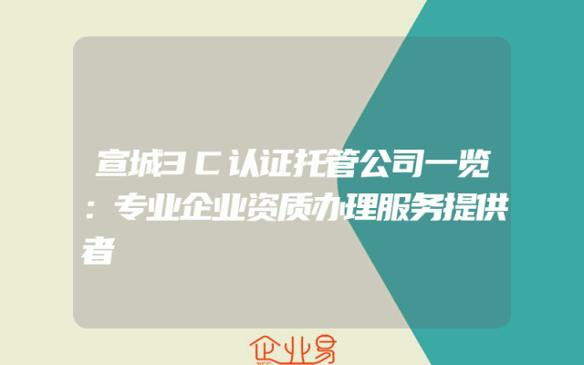 - 宣城3C认证托管公司一览:专业企业资质办理服务提供者