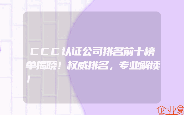 - CCC认证公司排名前十榜单揭晓!权威排名,专业解读!