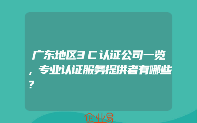 - 广东地区3C认证公司一览,专业认证服务提供者有哪些?