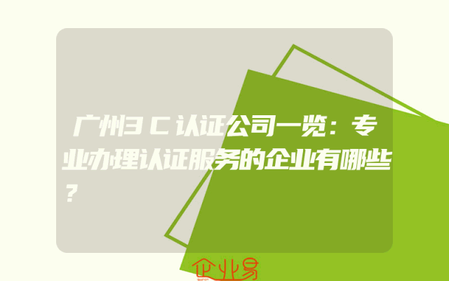 - 广州3C认证公司一览:专业办理认证服务的企业有哪些?