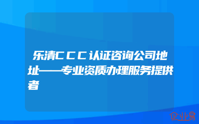 - 乐清CCC认证咨询公司地址——专业资质办理服务提供者