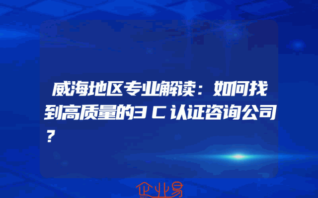 - 威海地区专业解读:如何找到高质量的3C认证咨询公司?