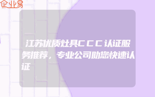 - 江苏优质灶具CCC认证服务推荐,专业公司助您快速认证一、引言在快速发展的现代厨房市场中,灶具产品的安全性能和品质要求日益严格。作为企业的产品,必须要经过权威的认证,才能够保障产品的市场地位和消费者的权益。江苏地区的企业如若生产灶具产品,CC