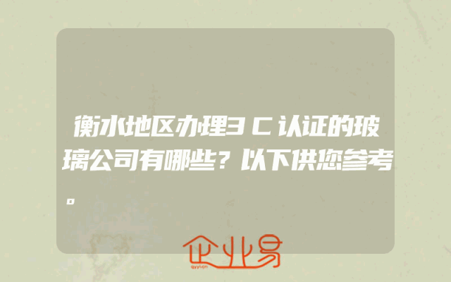 - 衡水地区办理3C认证的玻璃公司有哪些?以下供您参考。