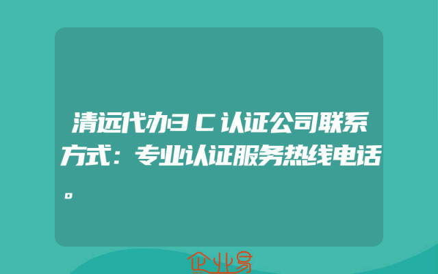 - 清远代办3C认证公司联系方式:专业认证服务热线电话。