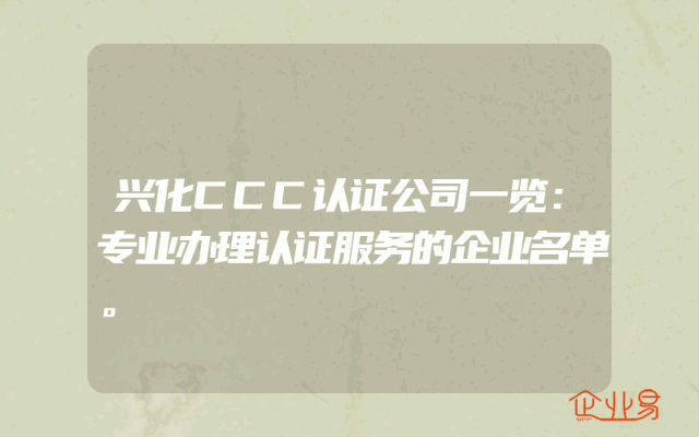 - 兴化CCC认证公司一览:专业办理认证服务的企业名单。