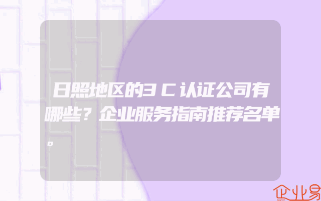 - 日照地区的3C认证公司有哪些?企业服务指南推荐名单。
