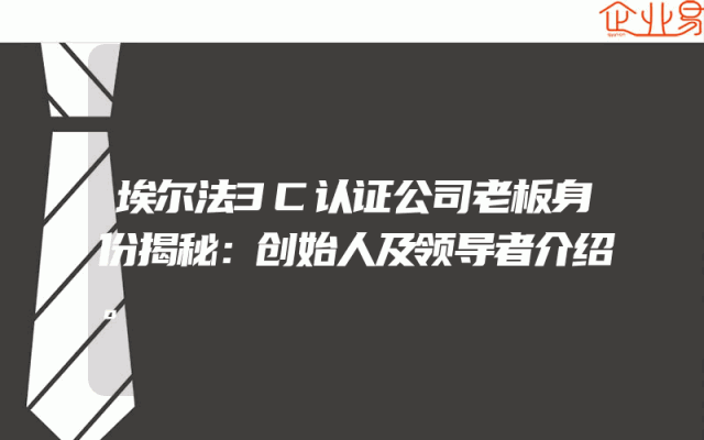 - 埃尔法3C认证公司老板身份揭秘:创始人及领导者介绍。