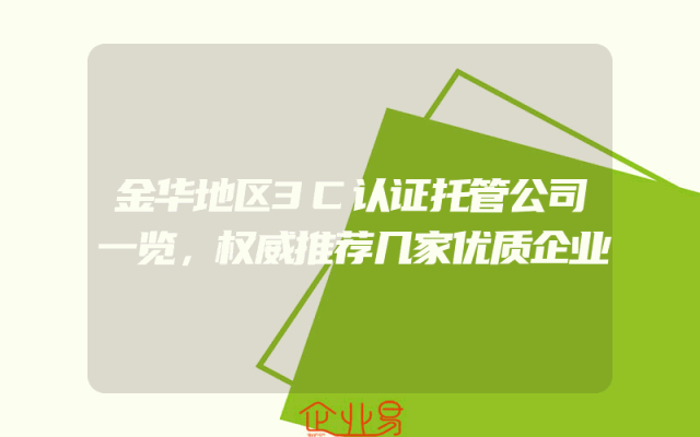 - 金华地区3C认证托管公司一览,权威推荐几家优质企业