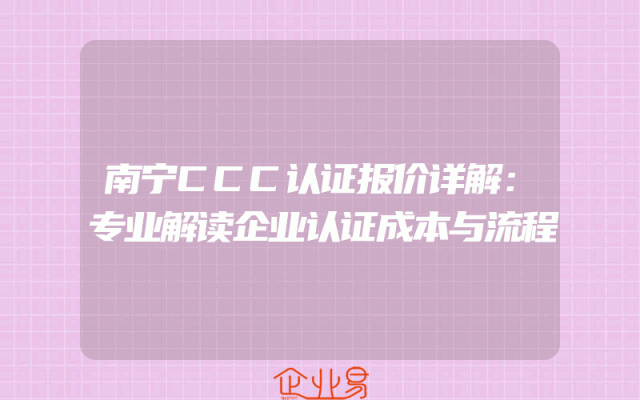 - 南宁CCC认证报价详解:专业解读企业认证成本与流程