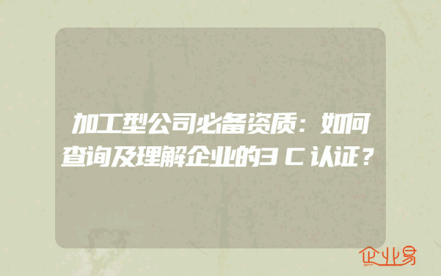 - 加工型公司必备资质:如何查询及理解企业的3C认证?