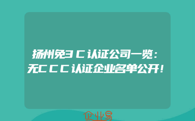 - 扬州免3C认证公司一览:无CCC认证企业名单公开!
