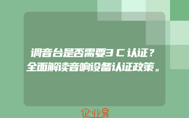 - 调音台是否需要3C认证?全面解读音响设备认证政策。