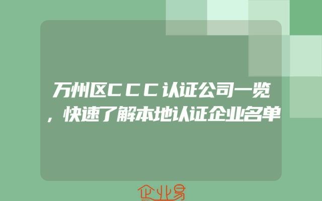 - 万州区CCC认证公司一览,快速了解本地认证企业名单