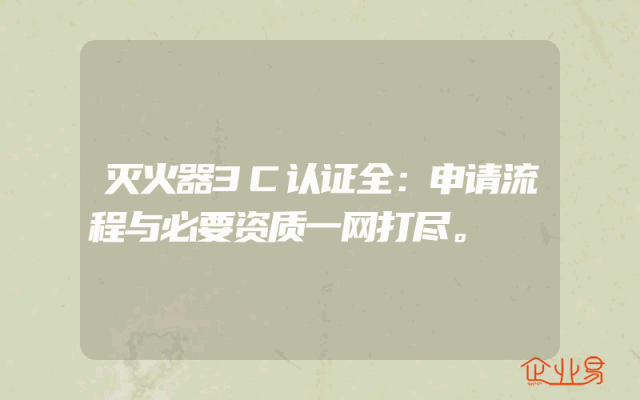 - 灭火器3C认证全:申请流程与必要资质一网打尽。