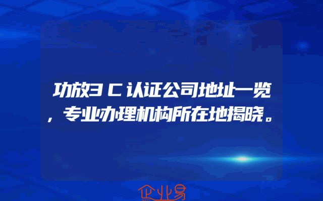 - 功放3C认证公司地址一览,专业办理机构所在地揭晓。