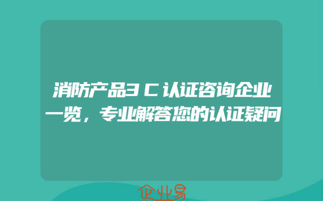 - 消防产品3C认证咨询企业一览,专业解答您的认证疑问
