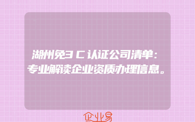 - 湖州免3C认证公司清单:专业解读企业资质办理信息。