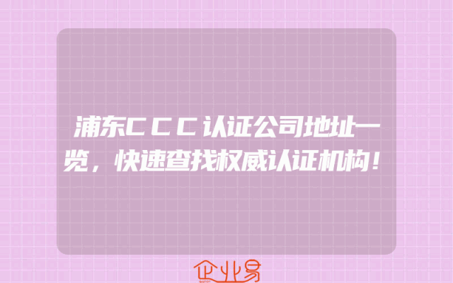 - 浦东CCC认证公司地址一览,快速查找权威认证机构!