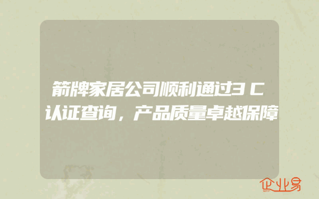 - 箭牌家居公司顺利通过3C认证查询,产品质量卓越保障认证通过,质量新篇章近日,箭牌家居公司顺利通过3C认证查询,这一重要里程碑标志着公司的产品质量达到了新的高度。对于消费者而言,这是信心的保障;对于箭牌家居来说,更是不断追求卓越、自我