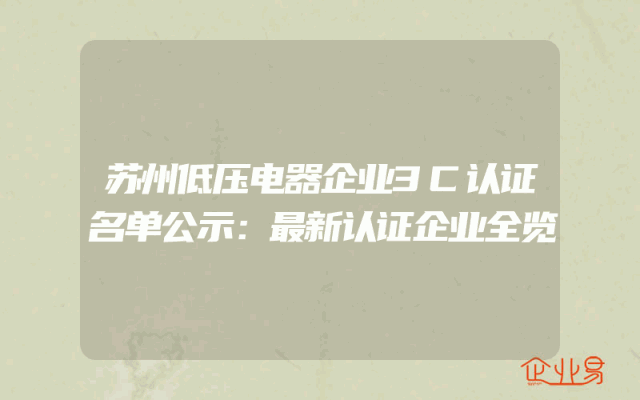 - 苏州低压电器企业3C认证名单公示:最新认证企业全览