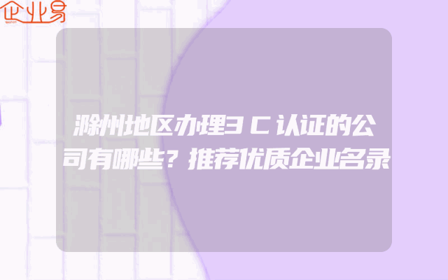 - 滁州地区办理3C认证的公司有哪些?推荐优质企业名录