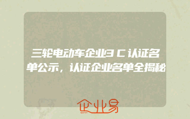 - 三轮电动车企业3C认证名单公示,认证企业名单全揭秘
