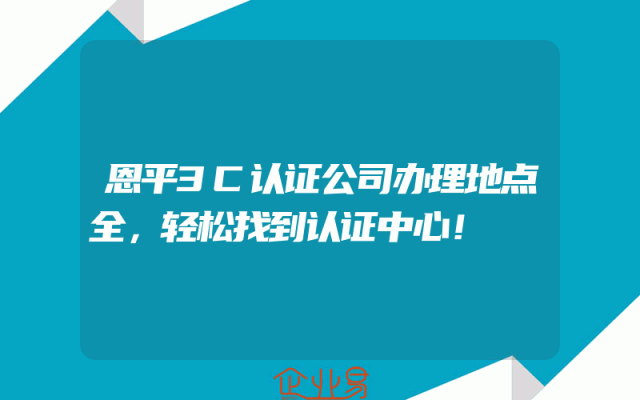 - 恩平3C认证公司办理地点全,轻松找到认证中心!
