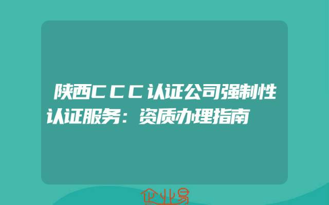 - 陕西CCC认证公司强制性认证服务:资质办理指南