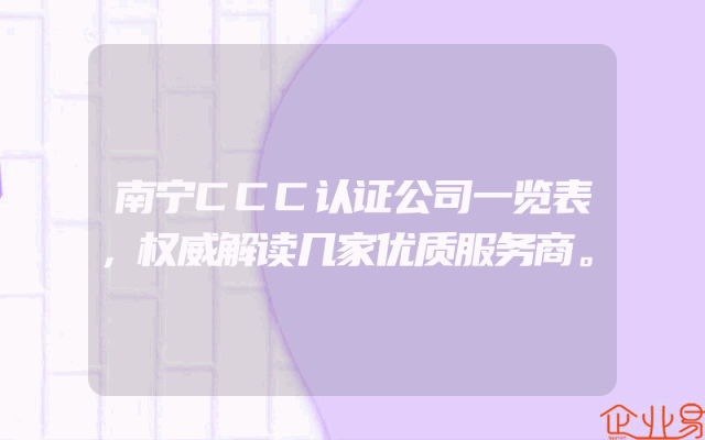 - 南宁CCC认证公司一览表,权威解读几家优质服务商。