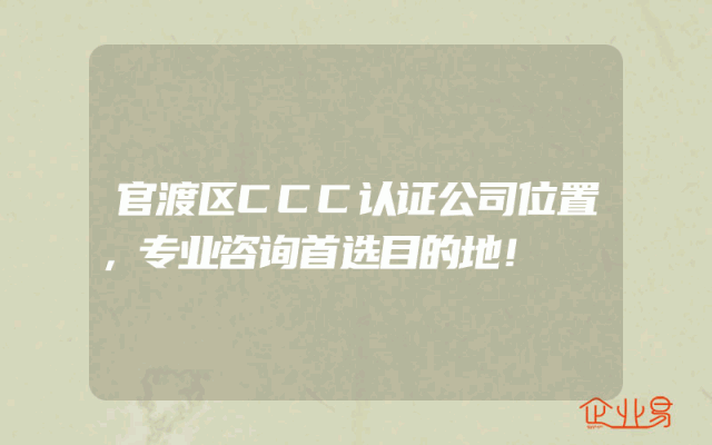 - 官渡区CCC认证公司位置详解——专业咨询首选目的地!一、官渡区CCC认证公司概述在充满经济活力的官渡区,众多专业认证公司如雨后春笋般涌现,其中CCC认证公司作为行业内的佼佼者,以其专业的服务和丰富的经验赢得了广大企业的信赖。CCC认