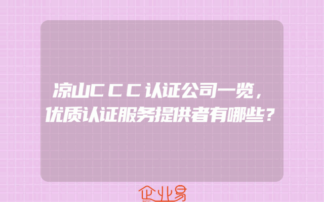 - 凉山CCC认证公司一览,优质认证服务提供者有哪些?