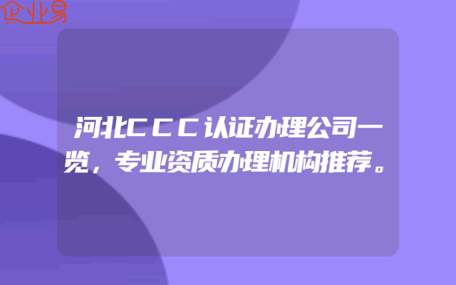 - 河北CCC认证办理公司一览,专业资质办理机构推荐。
