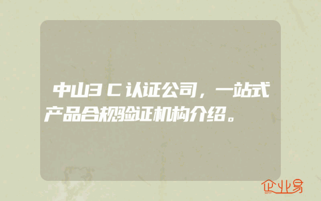 - 中山地区3C认证公司一览:权威解读当地认证企业名单引言中山市,位于广东省中南部,地理位置优越,经济繁荣,拥有众多优秀企业。在日渐激烈的市场竞争中,企业资质认证成为了企业发展的重要保障。本文将为您详细介