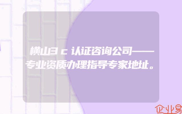 - 横山3c认证咨询公司——专业资质办理指导专家地址。