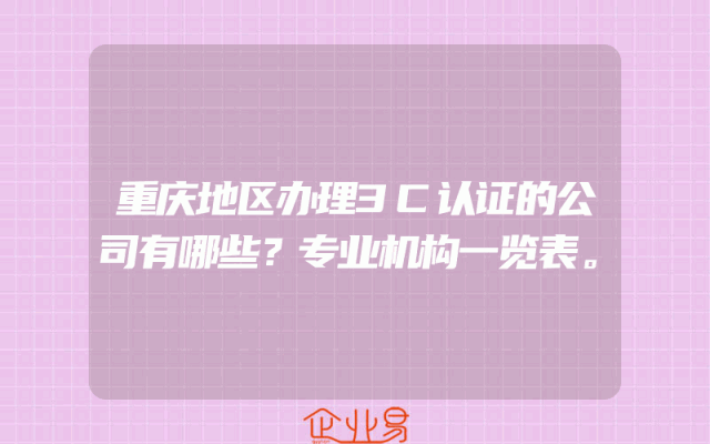 - 重庆地区办理3C认证的公司有哪些?专业机构一览表。