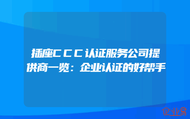 - 插座CCC认证服务公司提供商一览:企业认证的好帮手