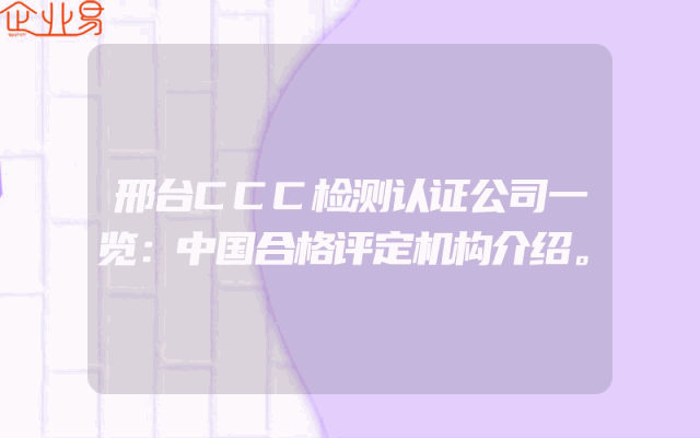 - 邢台CCC检测认证公司一览:中国合格评定机构介绍。