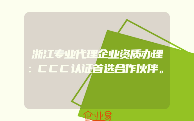 - 浙江专业代理企业资质办理:CCC认证首选合作伙伴。