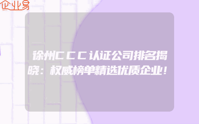 - 徐州CCC认证公司排名揭晓:权威榜单精选优质企业!
