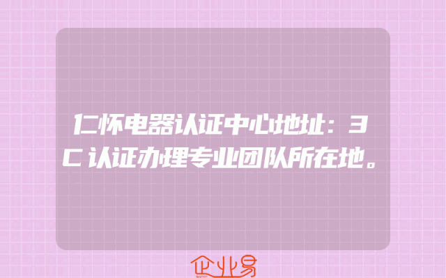- 仁怀电器认证中心地址:3C认证办理专业团队所在地。