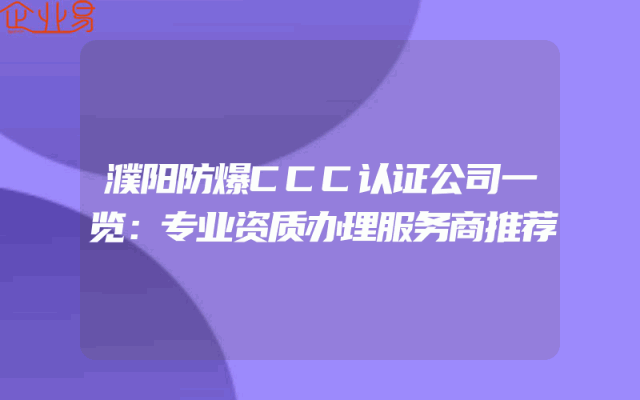 - 濮阳防爆CCC认证公司一览:专业资质办理服务商推荐