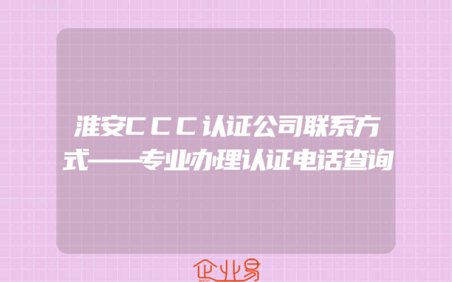 - 淮安CCC认证公司联系方式——专业办理认证电话查询