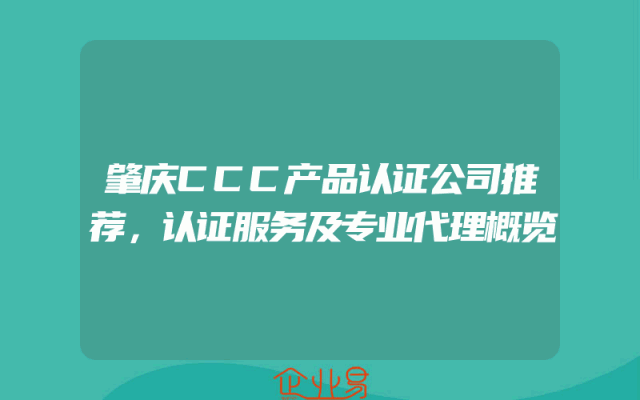 - 肇庆CCC产品认证公司推荐,认证服务及专业代理概览