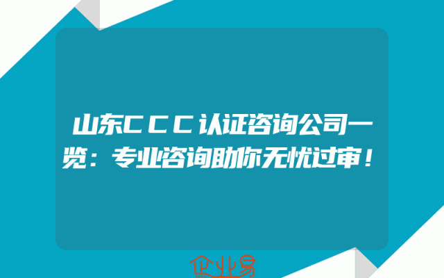 - 山东CCC认证咨询公司一览:专业咨询助你无忧过审!