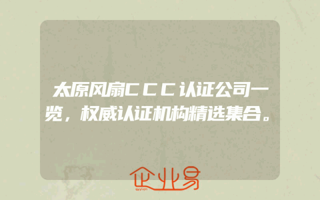 - 太原风扇CCC认证公司一览,权威认证机构精选集合。