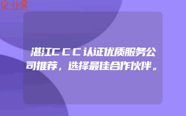 - 湛江CCC认证优质服务公司推荐,选择最佳合作伙伴。