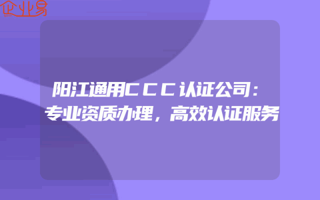 - 阳江通用CCC认证公司:专业资质办理,高效认证服务