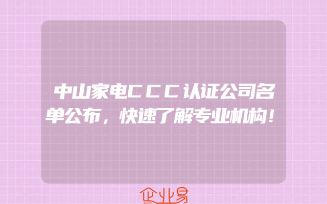 - 中山家电CCC认证公司名单公布,快速了解专业机构!